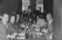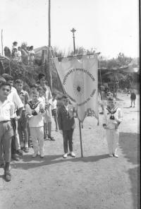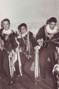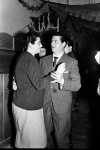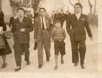 A esquerda da fotografia un persoaxe entrañable, Señor Domingo era a persoa que coidaba dos toldos na praia Compostela, na foto tamen distinguimos a Rosarito filla de Rosa que tiña unha tienda no Castro, esta acompañada do seu home