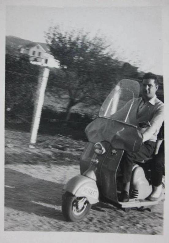 Aunque José Portas apunta que "poca informacion te puedo dar", esta fotografía de su padre (Luis Portas Barreiro) acompañado probablemente de su madre Carmela Salazar Martínez, le han hecho recordar parte de su infancia... "Mi padre para ver a mi madre tenía que ir desde Pontevedra a Marín para verla. Se que de aquella el que tenía una vespa era todo un previlegiado. Mi padre estaba muy enamorado de mi madre y cualquier esfuerzo era poco para poder estar con ella. Mi padre trabajaba como funcionario de la magistratura en Pontevedra. Eran una pareja preciosa, mi madre era un bollazo y mi padre también. Me dicen las señoras de aquella epoca, que eran una pareja tan guapa que la gente se giraba para verlos. Ella era tambien hija de una de las familias mas influyentes de Marín. Mis abuelos tenían los dos cines que habia en Marín y de aquella tener dos cines era la hostia. En casa había dinero y mi padre se ligo al bollito del pueblo". La fotografía es de la década de los sesenta y está tomada en Aguete.