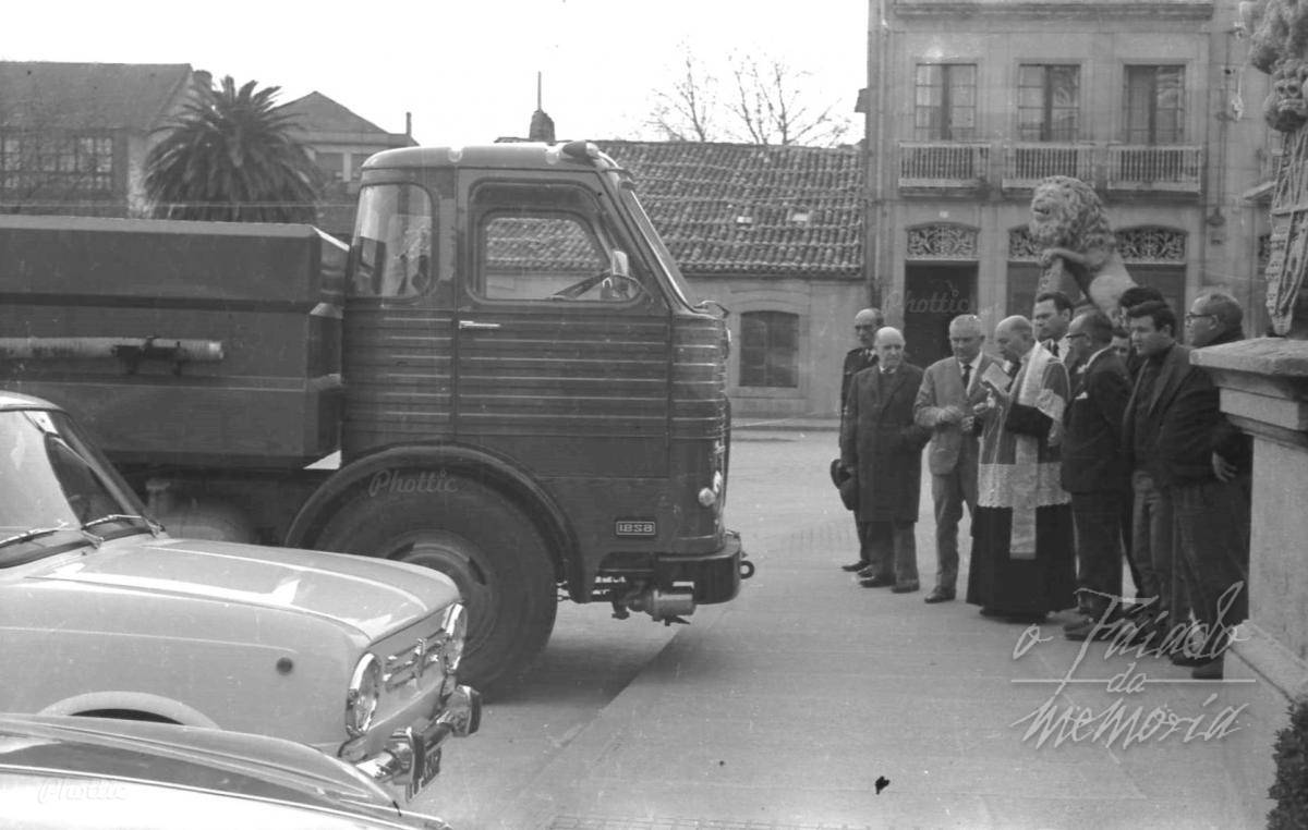Temos o cura Chantada, a Jose Martinez, o secretario do Ayuntamiento, Bazaci, o jefe dos guardias Dasilva, estan a bendecir, cousas da epoca, un novo camion para obras