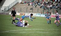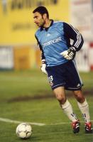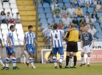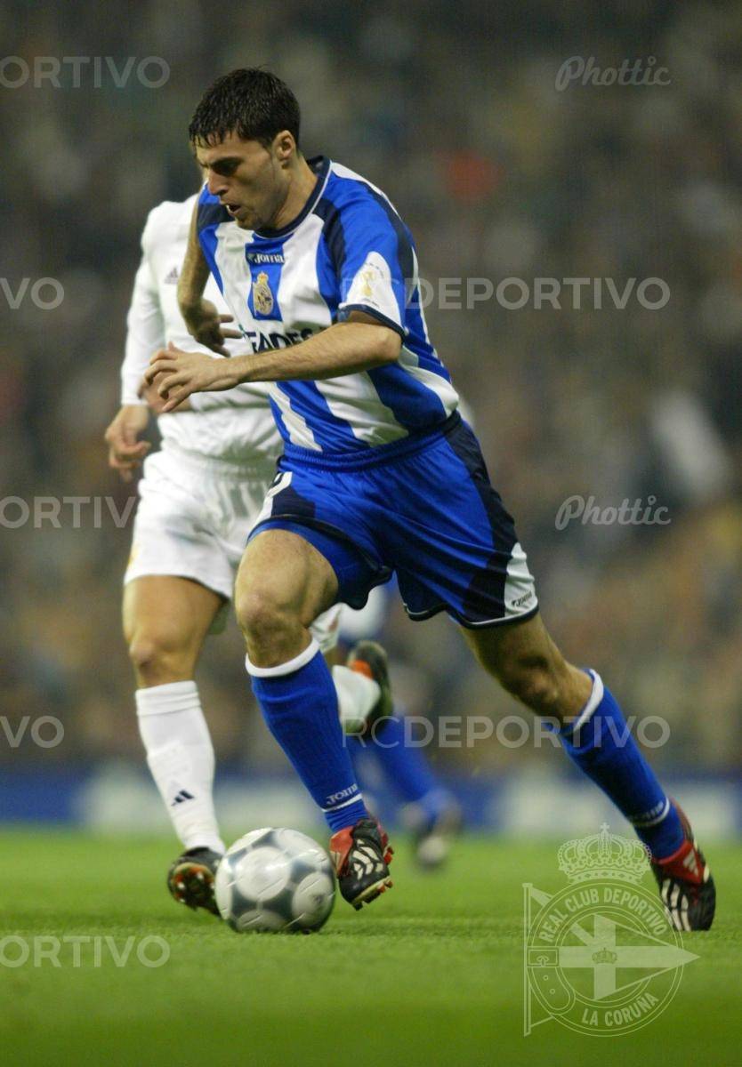Diego Tristán conduce a pelota nun lance da final da Copa do Rei de 2002, disputada entre o Real Madrid e o Deportivo no estadio Santiago Bernabéu o 6 de marzo de 2002. O Dépor impúxose por 1-2 ao equipo branco, que celebraba ese día os cen anos da súa fundación.