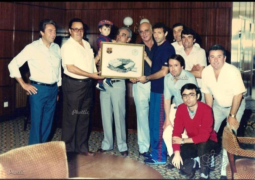 Quini recibindo un agasallo de parte do presidente da peña aresana, José Ramón do Gran barato