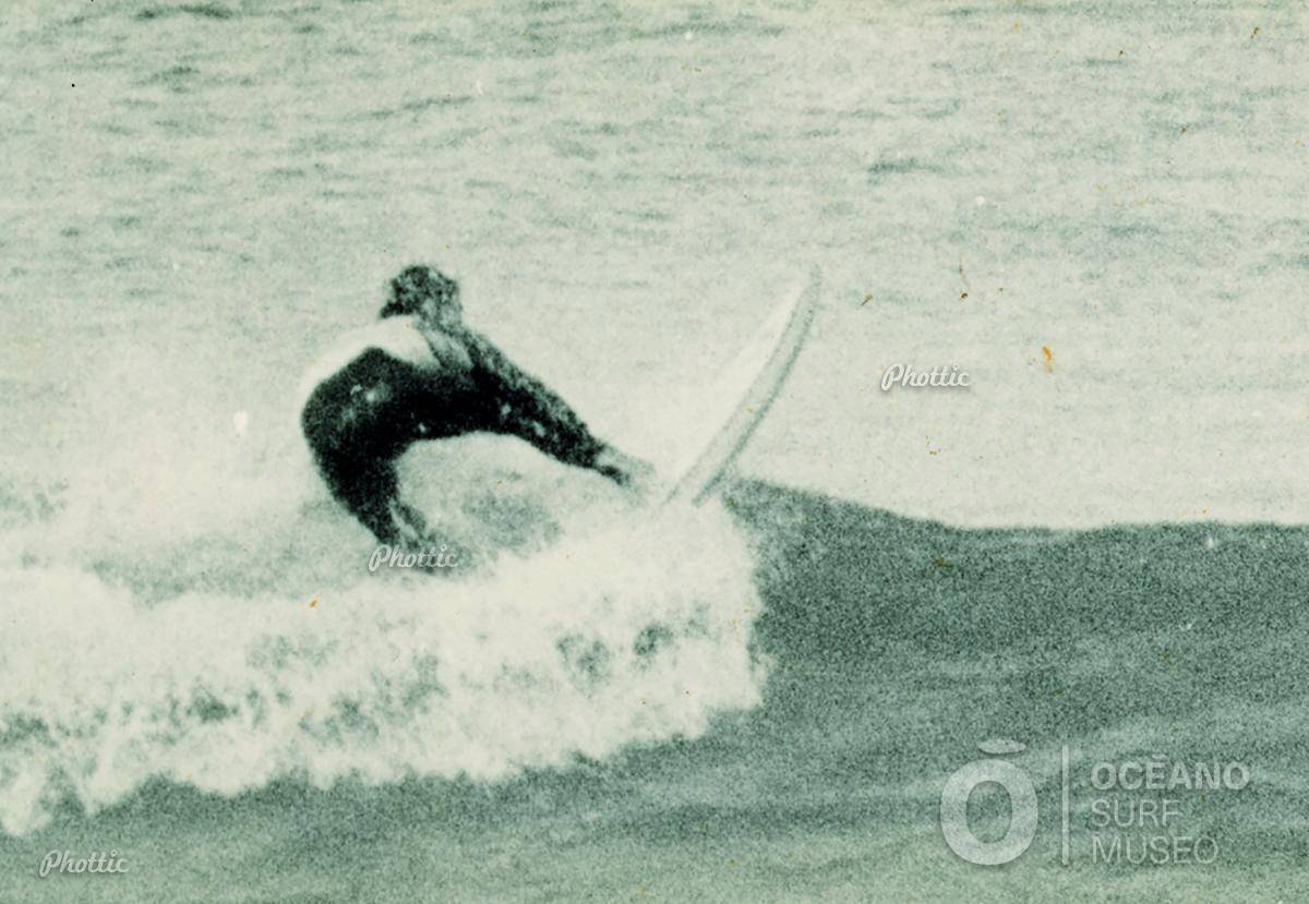 Carlos Bremón surfeando en la playa de Santa Cristina (Oleiros). Esta imagen forma parte de una serie de nueve fotografías tomadas todas la misma tarde de 1982. Una tarde que tuvo incluso "repercusión cinematográfica" (consultar 'Bremón en Santa Cristina (1)' en esta misma colección).