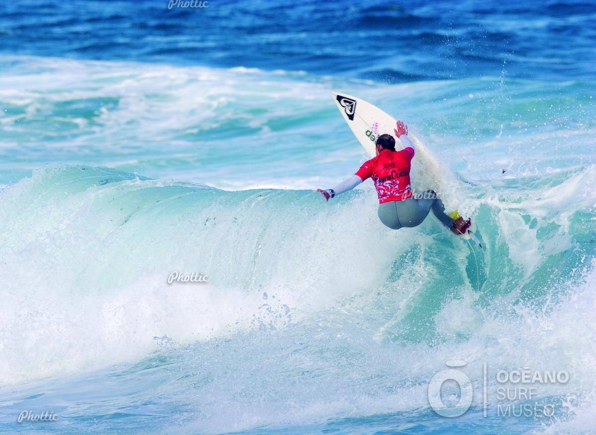 La surfista francesa Caroline Sarran ha competido hasta en siete ocasiones en la prueba femenina del Pantín Classic (en la foto durante su participación en 2005). En esta edición quedaría segunda. Al año siguiente se proclamaría campeona de la competición.