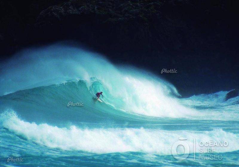 Esta foto representa perfectamente lo que es Pantín. La fotografía fue realizada desde Marnela, pero la perspectiva hace que parezca tomada desde el agua. En el conjunto el surfista (Naohisa Ogawa) es el detalle que da dimensión a una composición en el que la ola toma todo el protagonismo, y donde el acantilado al fondo, primero rocoso y después verde se convierte en el marco en el que todo ocurre. Una ola grande. Un mar que no tiene porque estar perfectamente ordenado. El japonés, conocido también con el sobrenombre de “Silver Bullet” y héroe en su país por ser el primer nipón en dominar Pipeline, podría ser un surfista más de todos los pasados por Pantín, pero esta foto, gracias al buen ojo y la composición de Jakue Andikoetxea, le ha hecho pasar a la historia, y de todas, junto con la de la final de 1988, sea de las más icónicas del campeonato.