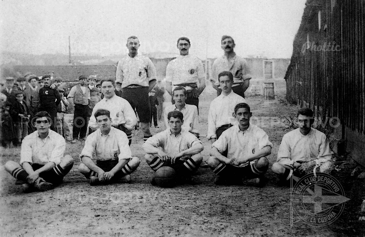 Archivo RCD/Pachy Dopico, Fondo Ferrer, digitalizado por La Opinión de A Coruña | Imagen de '110% Blanquiazul' ➡ http://owl.li/jJGz304IqM9 ⬅ Instantánea de julio de 1907. Formación del Dépor que se mide al Coruña