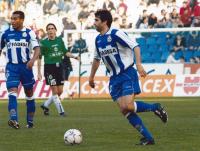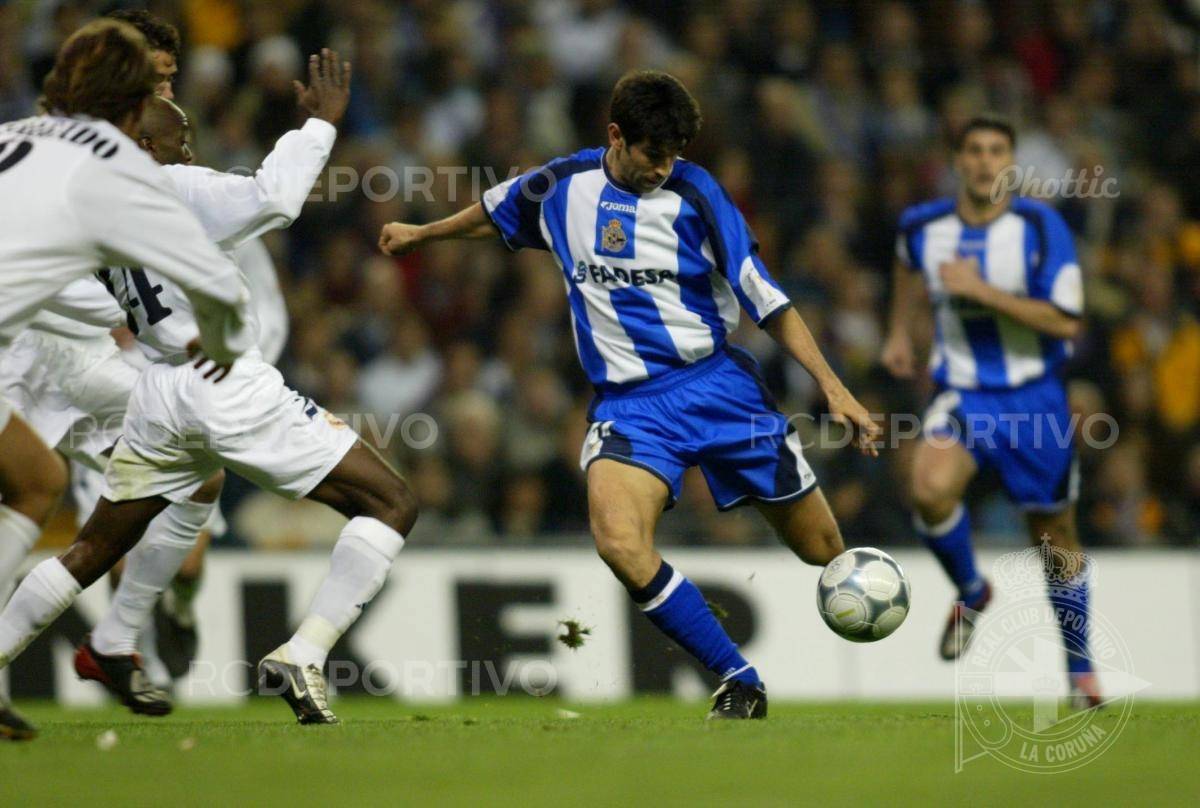 Valerón dispara a portería en un lance de la final de la Copa del Rey de 2002, disputada entre el Real Madrid y el Deportivo en el estadio Santiago Bernabéu el 6 de marzo de 2002. El Dépor se impuso por 1-2 al equipo blanco, que celebraba ese día los cien años de su fundación.