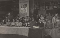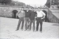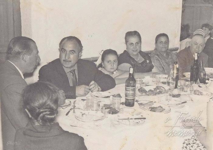 A esquerda familia Galban Rico, no medio a filla mais nova Piky, a dereita o matrimonio Fresco, que vivian na rua que iba as hortas de Santa Lucia, pais de Carmiña, e Tito Fresco, outro dos fillos casou con Loliña, do Bar Loliña do Carril.