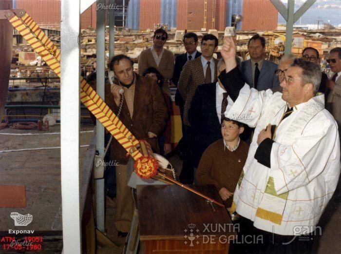 Bendición do buque antes da botadura no Astillero Astano, S.A en Perlío.