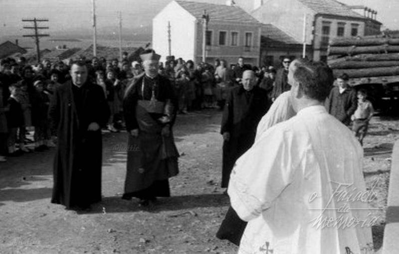 Cardenal e Arzobispo de Compostela, chega a Vilaxoan a principios dos anos sesenta, a sua dereita o cura Tarrio e a esquerda Chantada