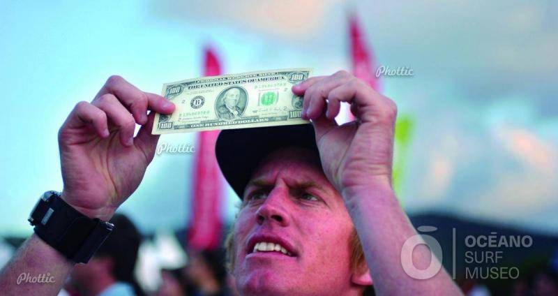 Durante la entrega de premios comprobando que los dólares son auténticos...