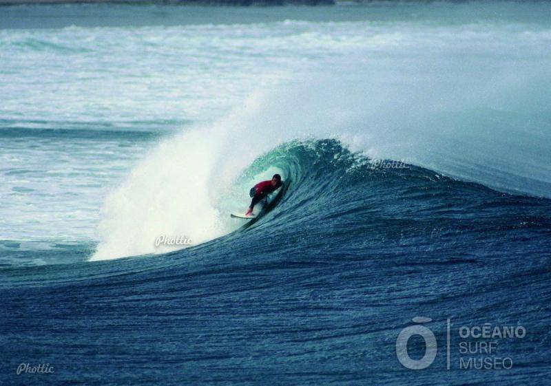 Shane Bevan, en su segunda paticipación en el Pantín Classic, entrando en un tubo. El australiano, que estuvo en cinco ocasiones en el campeonato que se realiza en aguas gallegas, obtuvo en aquel 1997 la novena plaza del WQS.