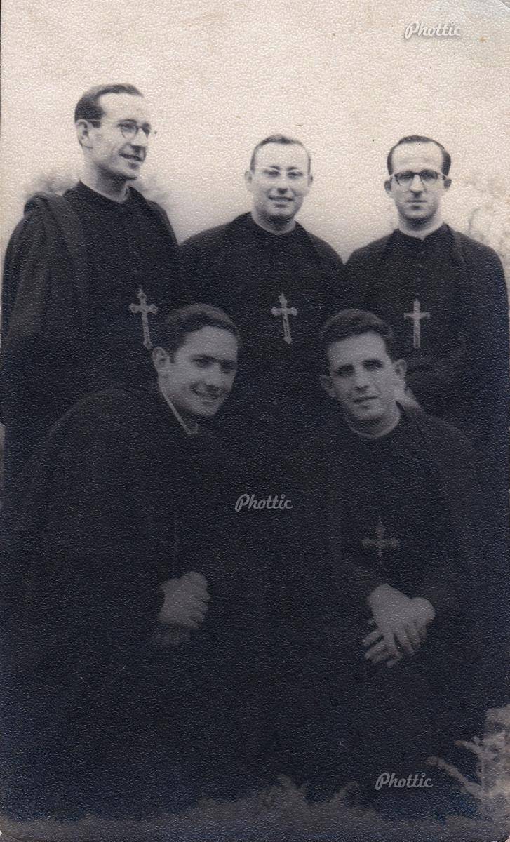 Pola parte de atrás aparece escrito tamén o seguinte: " A la escuela de Quintá que tan abnegada y acertadamente dirige Don Maximino" e asinan. "Los misioneros CMFF", polo que deducimos que estarian no Convento de Baltar xa que pertence á Congregación dos "Misioneros Hijos del Inmaculado Corazón de María", coñecidos como Claretianos que levan por lema en latín: Cordis Mariæ Filius, de ahí as siglas na firma CMFF.