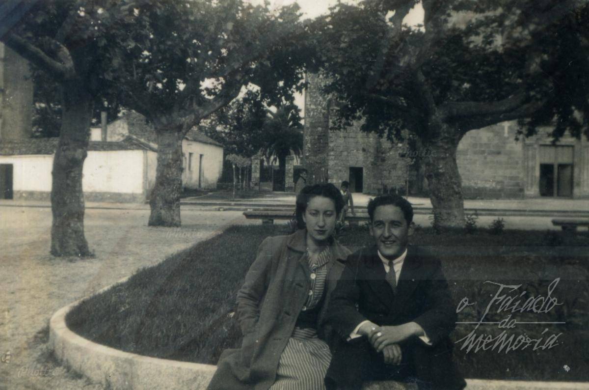 Eles son os pais da nosa blogueira Margarita Mosquera, estan posando para o fotografo na praza de España