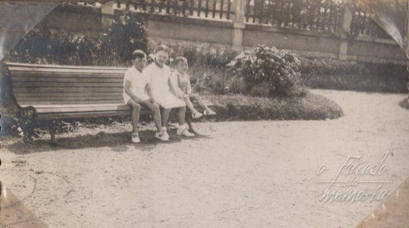 Donde estan sentados posando Chelo e seus irmans, en calquer momento o noso patrocinador donante e amigo Jesus Perez Arca entrara a describir as imaxenes