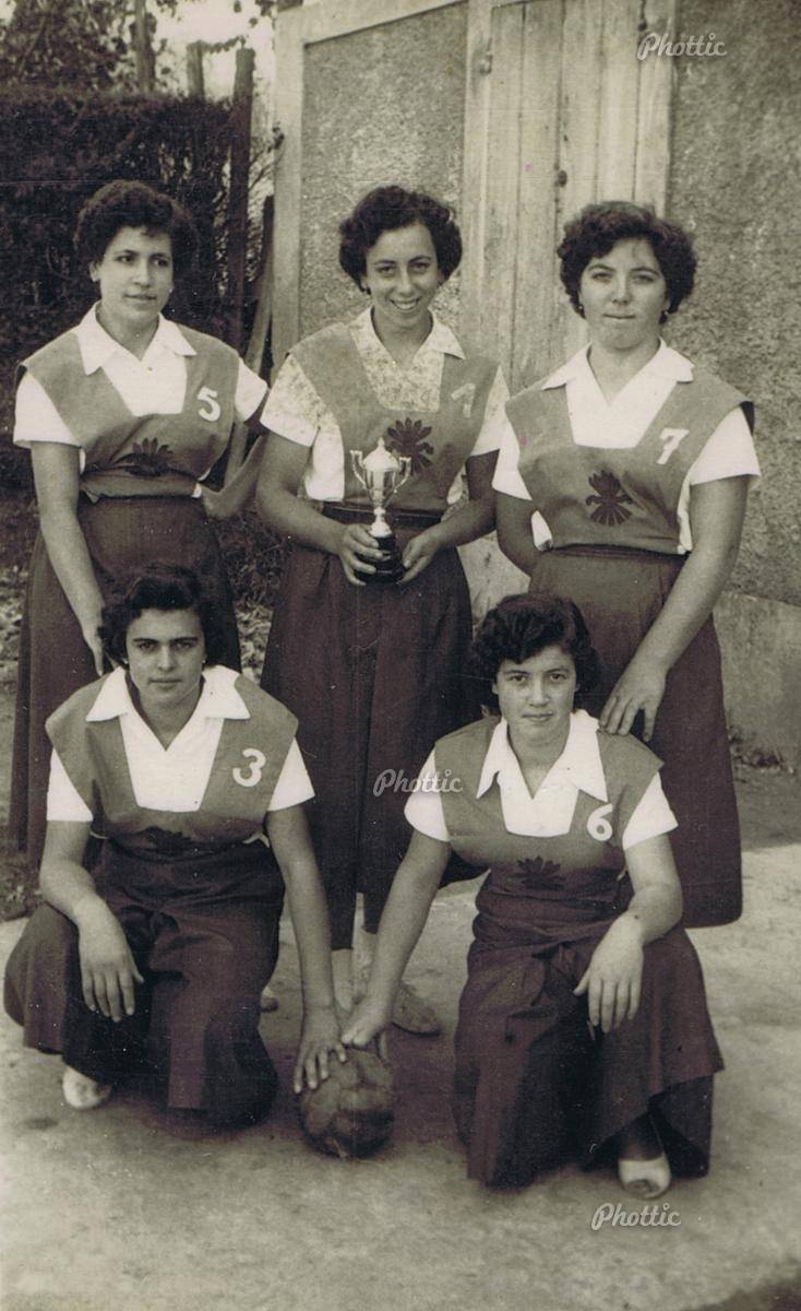 As xogadoras do equipo feminino, Piruca, América, Concha, Adela e Pilarita.