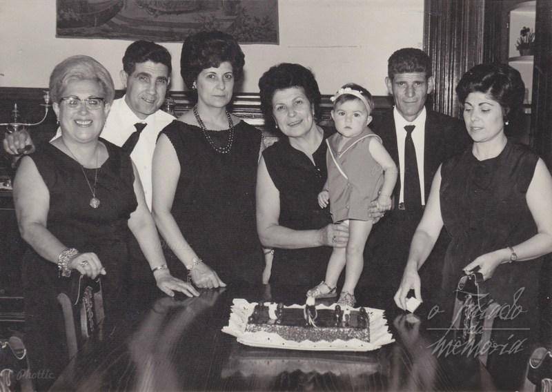Mercedes Lopez a que tanto lembramos, na fotografia con varios dos seus irmans entre eles Pilar e Lola que ten en brazos a Isabel Juanatey no seu primer cumpleanos. Xente nosa
