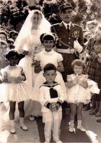 Hola a todas-os. Sego pensando que a moza que está no medio, cun traxe branco, e a miña curmán Lina.Un saudo