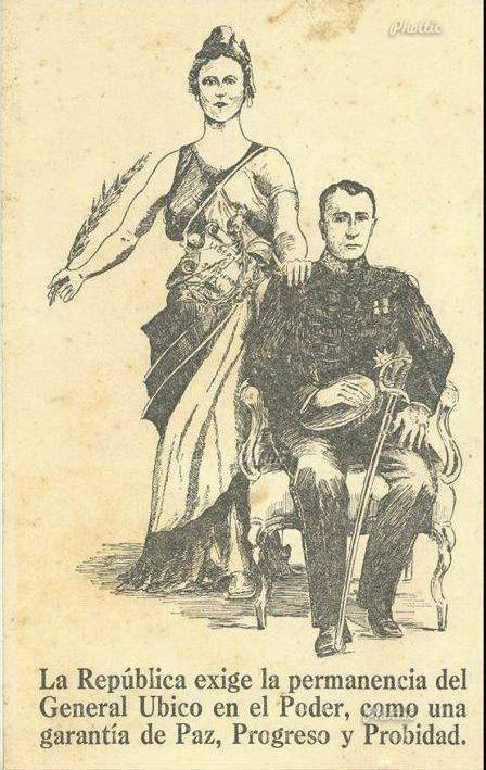 Con el propósito de perpetuarse en el poder, el dictador Jorge Ubico convocó a un plebiscito que se realizó en mayo de 1935. El propósito del mismo fue anular la cláusula constitucional que prohibía la reelección presidencial. El pretexto fue un complot contra el dictador y unas supuestas peticiones de 246 municipios, para que continuara gobernando. “Peticiones espontaneas” con idéntica redacción. El cuestionado resultado oficial otorgó 834,168 votos a favor y 1,227 en contra. Esto permitió modificar la constitución y prolongar su mandato. En 1944 se vio forzado a renunciar producto de los movimientos que culminaron con la Revolución de Octubre. Para publicitar el plebiscito del 35, la maquinaria estatal utilizó la imagen de Ubico y una figura que representaba a la república detrás suyo. En respuesta, sus detractores hicieron circular unos versos atribuidos al escritor colombiano Climaco Soto Borda “"Si pública es la mujer/que por puta es conocida/república viene a ser/la puta más corrompida. Y siguiendo el parecer/de esta lógica absoluta/todo aquel que se reputa/de la República hijo/debe ser, a punto fijo/un grandísimo hijueputa." Imagen en Wikipedia.