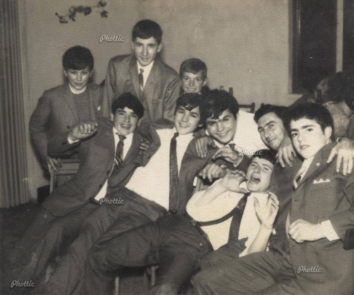 No restaurante Suárez en Meirás (1969). De pé de esquerda a dereita: Manolito de Martínez, Mesía (o fontanero), Tonio do Forneiro. Sentados de esquerda a dereita: José Manuel de Hermida, Ricardo de Queira, Antonio de Queira, Tomás de Chinto, Pedro do Xiljaro e José de Santiago