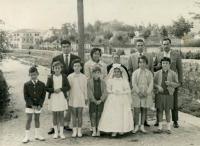 Del Estudio de Fotos Arturo nos fuimos a un caserón vacío, donde se celebró la comida que tenía un menú bastante normal, por aquéllas fechas. Consistía en: Merluza frita (nada de Romana).