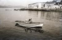 A foto parece feita na praia de Canelas en Vilaxoan, a o fondo o lugar que na actualidade esta situada a depuradora