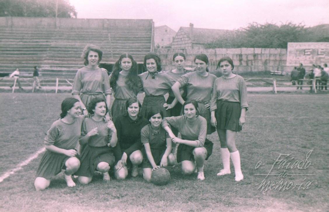 Partido de futbol entre mulleres, finais dos anos sesenta, entre outras abaixo a esquerda Angela Garcia