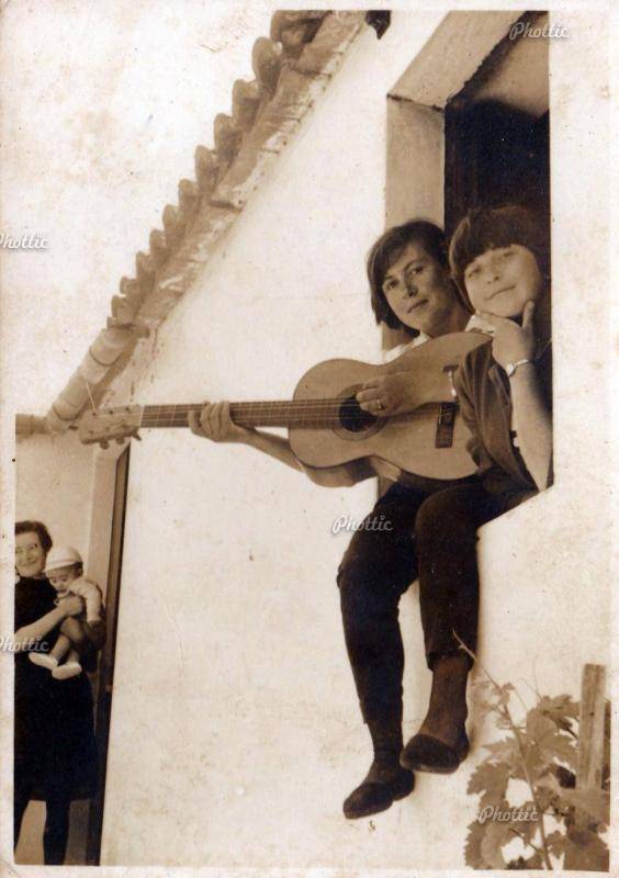 Manola do Roxo con guitarra e Maruja de Hilaria. Ao fondo Luca con Jesús Manuel.