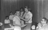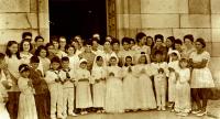 Rosa e Maria do Carmen Conles na procesion do Corpus en Fontecarmoa vestidas co traxe da primeira comunion