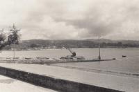 Actual praza da Constitución e antiga escola de nenas con patín ao fondo