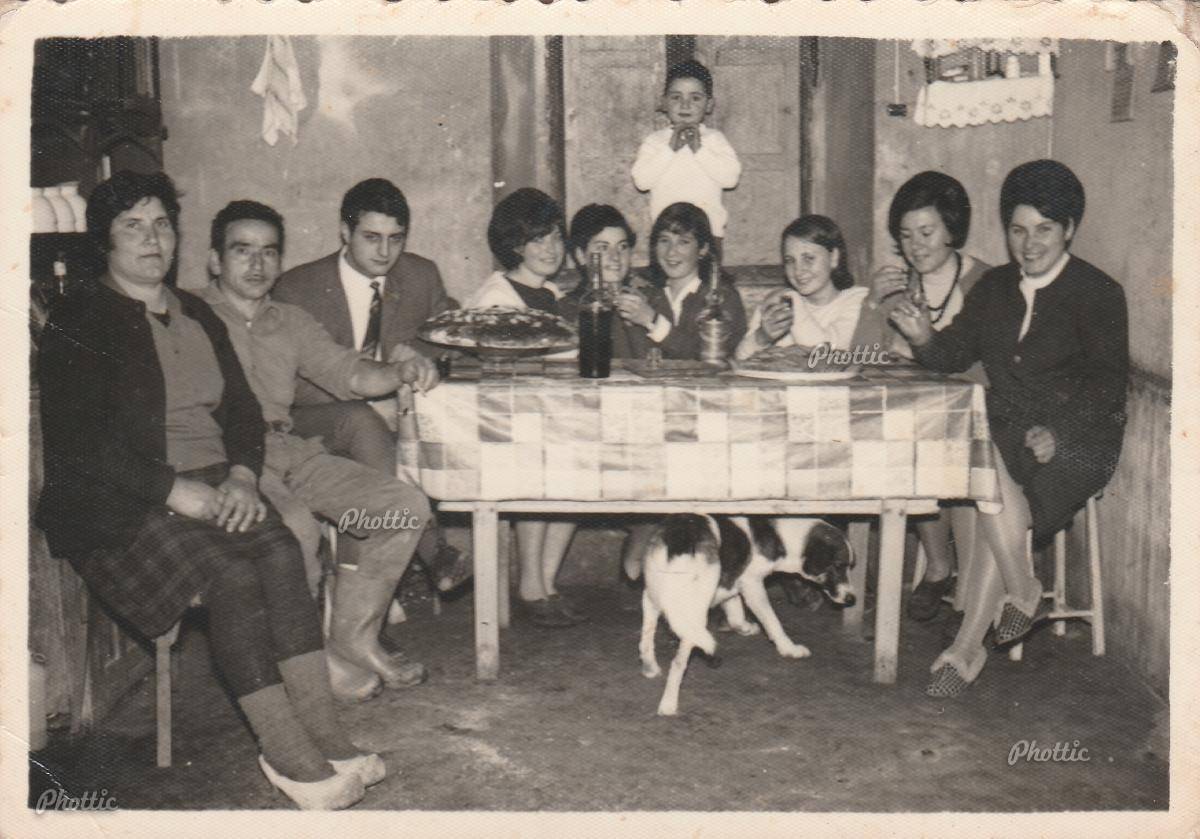 De esquerda a Dereita: Divina de Celia, Pepe de Hermida, Niceto, Maruja de Hilaria, Pilar de Hermida, Manolita de Rufino, Nieves do Foxo, Manola do Roxo e Maruxa de Hermida, arriba Raul de Hermida.
