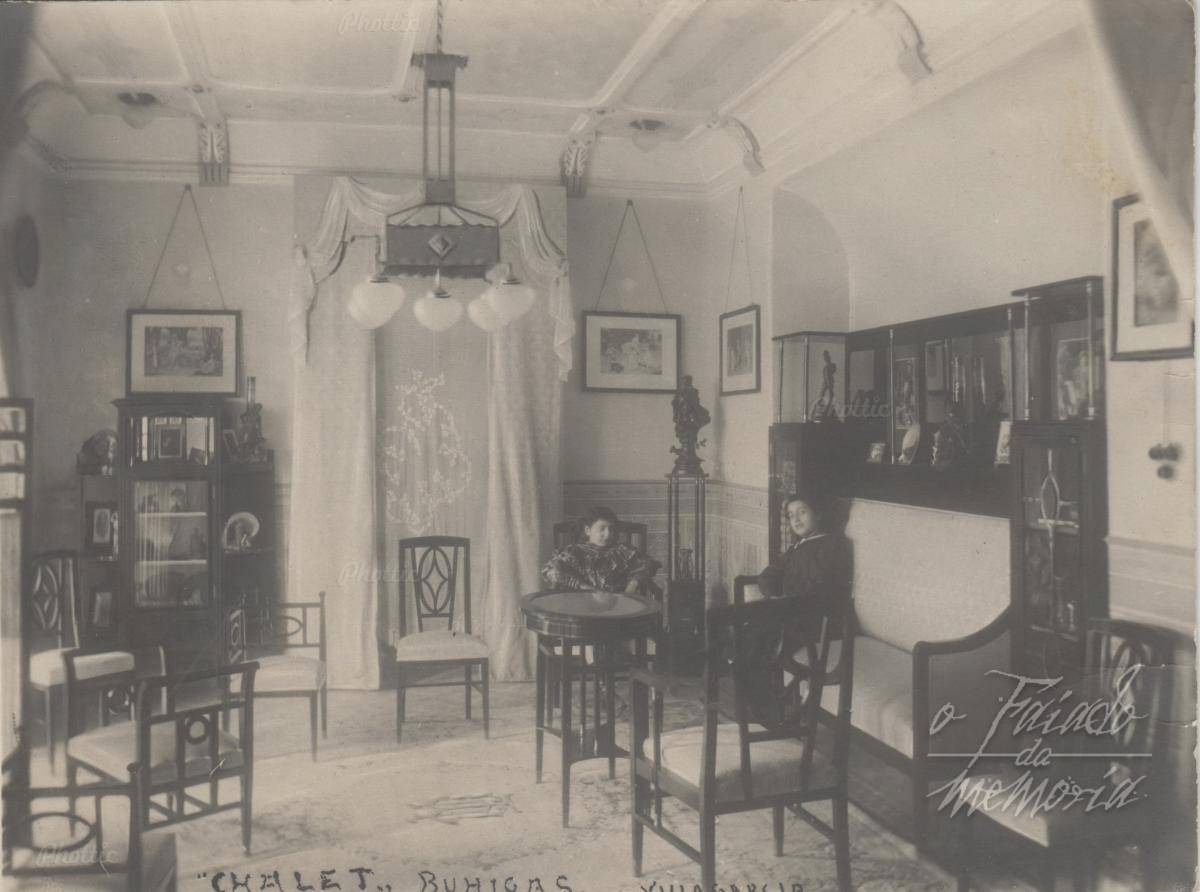 Esta e unha xoia de fotografia, aquela maravilla de casa que era o chalet de Buhigas donde hoxe esta o Banesto ollamolo no seu interior fijadevos nas persoas que se ven na fotografia de roupa larga