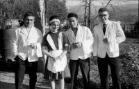 A dereita Quique Jimenez, co seu fillo Jose Enrique en brazos, a sua dereita Carmucha agarrando a sua sobriña Rosarito, por ultimo Tomas Alcalde ca sua filla Esperanza, no dia de hoxe adicamoslle a subida de fotos por estar de cumpleanos