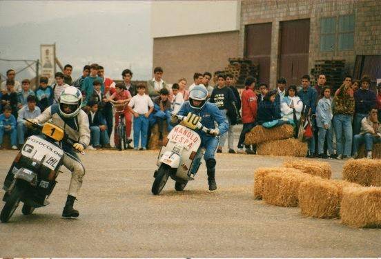 En ocasiones, una curva por la que has pasado sinfinidad de veces, se te atraganta. Eso es lo que le pasó a Jose Martínez (con el dorsal 10, hijo de Manolo Vespa) encarando esta curva de derechas en la prueba de resistencia de 1principios de los 90 celebrada en el circuito urbano-portuario de Bouzas. En la primera podemos ver como al ir tan cerrado se lleva por delante una de las balas de paja que delimitaban el circuito. En la segunda, se ve como el impacto y la posterior rectificación, le llevan a tomar la curva mucho mas abierta de lo competitivamente deseable. A todas luces un plausible gesto técnico que llevaron a nuestro piloto a solventar este indeseable percance con pericia.