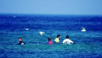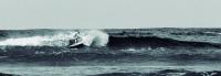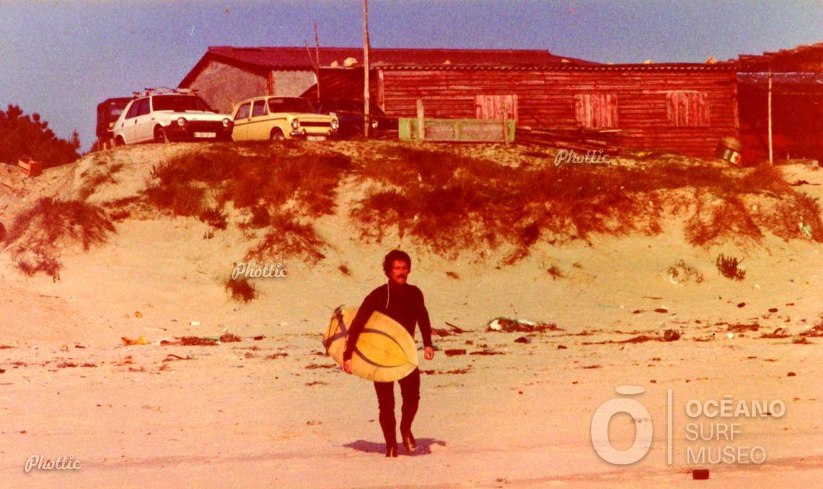 Carlos Bremón caminando hacia al mar, dispuesto a practicar un poco de surf, en la playa de Doniños (Ferrol).