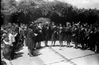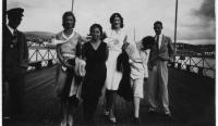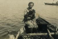 Fábrica de conservas Malveiras engalada con motivo de la festividad del Carmen en carril. Foto de principios de los años 60. Los motivos marineros eran realizados por los hijos de los dueños de la fábrica.