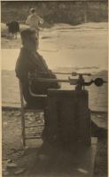 La foto pertenece al acto inagural de la traída de aguas a Carril. La foto está tomada delante de la sede actual del Gato Negro.