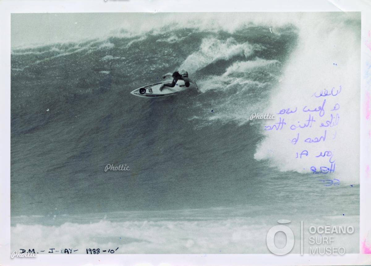 La llegada en 1989 de Dave Malherbe a Pantín con su tarjeta de “surfer profesional” fue uno de los primeros síntomas de la línea que iba a seguir el campeonato en los próximos años. Desde ese momento el Océano Surf Club estableció una estrecha relación con este surfista sudafricano que en 1994 nos mandaba esta postal de Navidad desde Jeffrey’s Bay.
