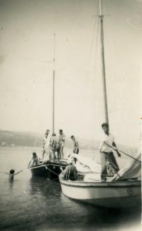 Membros da familia Jaureguizar entrando no colexio Filipense donde se oficiou a voda da filla de Bazaco secretario do Concello
