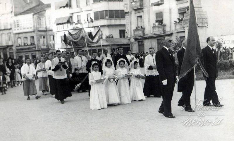 Pode ser a de Corpus,nenas de Primeira Comunion, mais ben poucas, a foto nos permite ver a esquina da bonita casa dos Abalo.