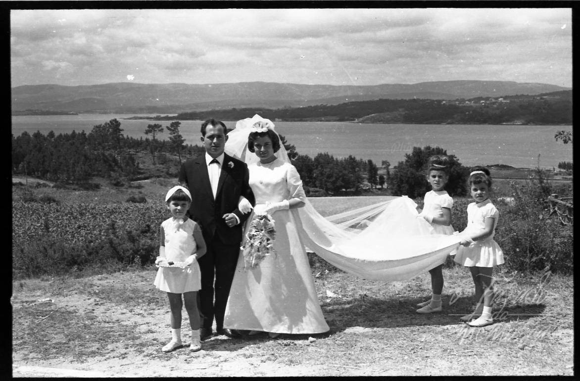 Os noivos son Tito Maneiro e Mari Carmen Giráldez. A nena das moedas é Elena, a dona da tenda Tiza.
