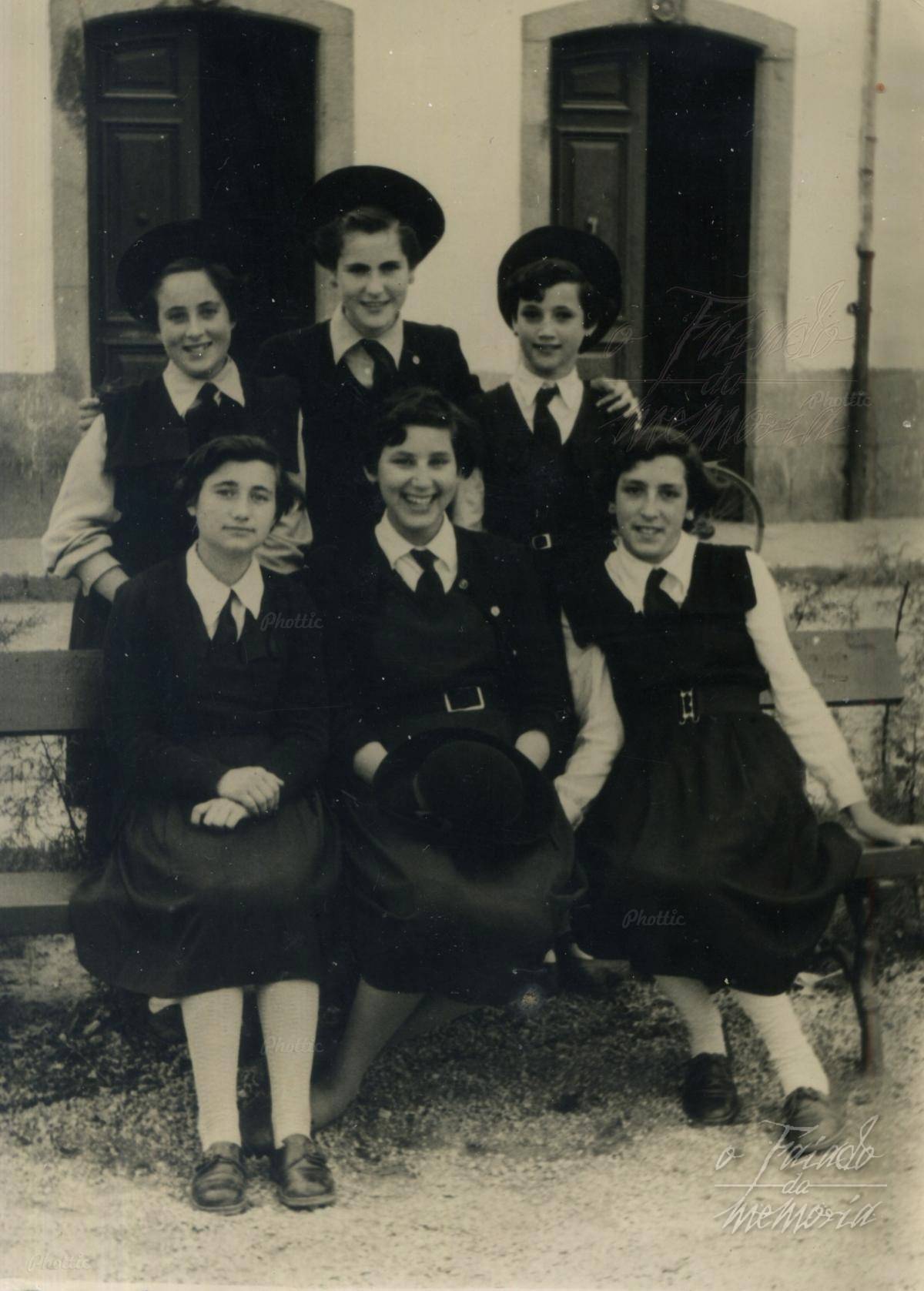 Co seu uniforme antiguo, entre elas Paquita de Maria, Marina Tuñez e Tuka Lamelas