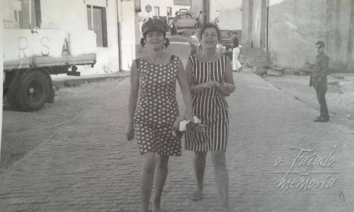 Hola a todas-os. Que simpática e veraniega foto. As duas mozas, felices e contentas pola rua, lucindo modelito, de raias e lunares, quizáis, camiño da praia. Un saudo. Mari Patiño.