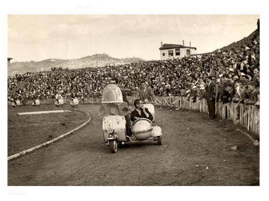 Durante aquel año, que unos sitúan en el 51, y otros en el 49, qué mas dará; era habitual escuchar en el estadio el grito de ánimo de Toniño para su ídolo, “Halaaaa, chuta, Marcial, chulo, valiente…..”. Marcial en agradecimiento a su admirador, le prometió que si ganaban la liga, le daría un paseo triunfal por el estadio en su Vespa; y ese es el momento que recoge la instantánea".