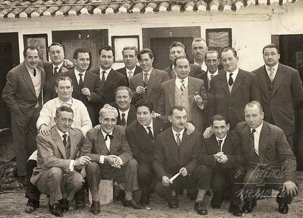 Comida en Casa Campos por la indumentaria del mismo. Por arriba y a la izquierda Celso Callón, Mariño, Regueira, Guerrero, Enrique Ordoñez, Luis Blanco, Abelenda, y Juan Quintans. Me faltan cuatro que no me acuerdo de sus nombres.