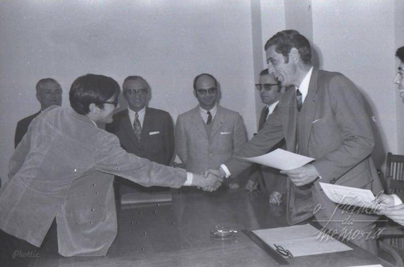 A esquerda Cesar Gomez, que xunto a o seu irman Pepe eran os propietarios de Multiplast, tienda adicada a o papel decorado, moquetas, pintura, innovacions que da sua man escomenzamos a coñecer en Vilagarcia