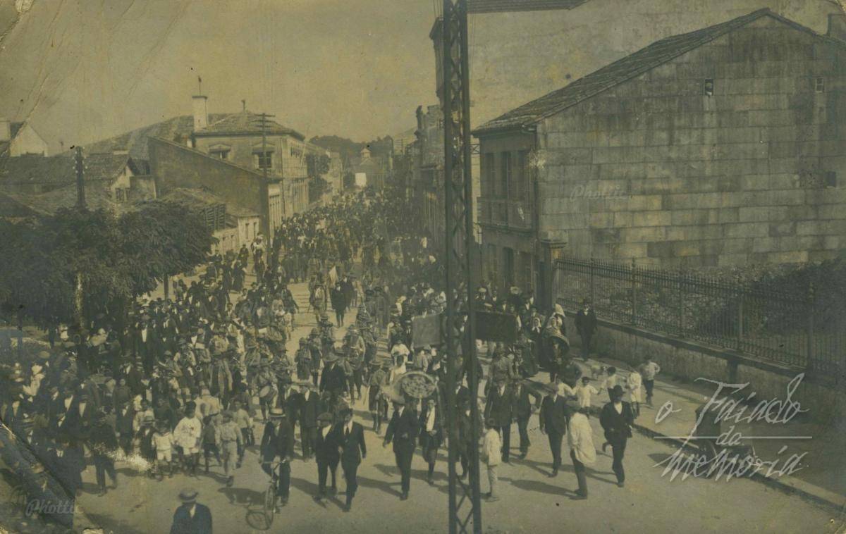 A xente viña da estacion vella, como se circulaba antes, andando, pasan polo barrio dev Santa Lucia donde estaba instalada a sede de Telegrafos co seu repetidor