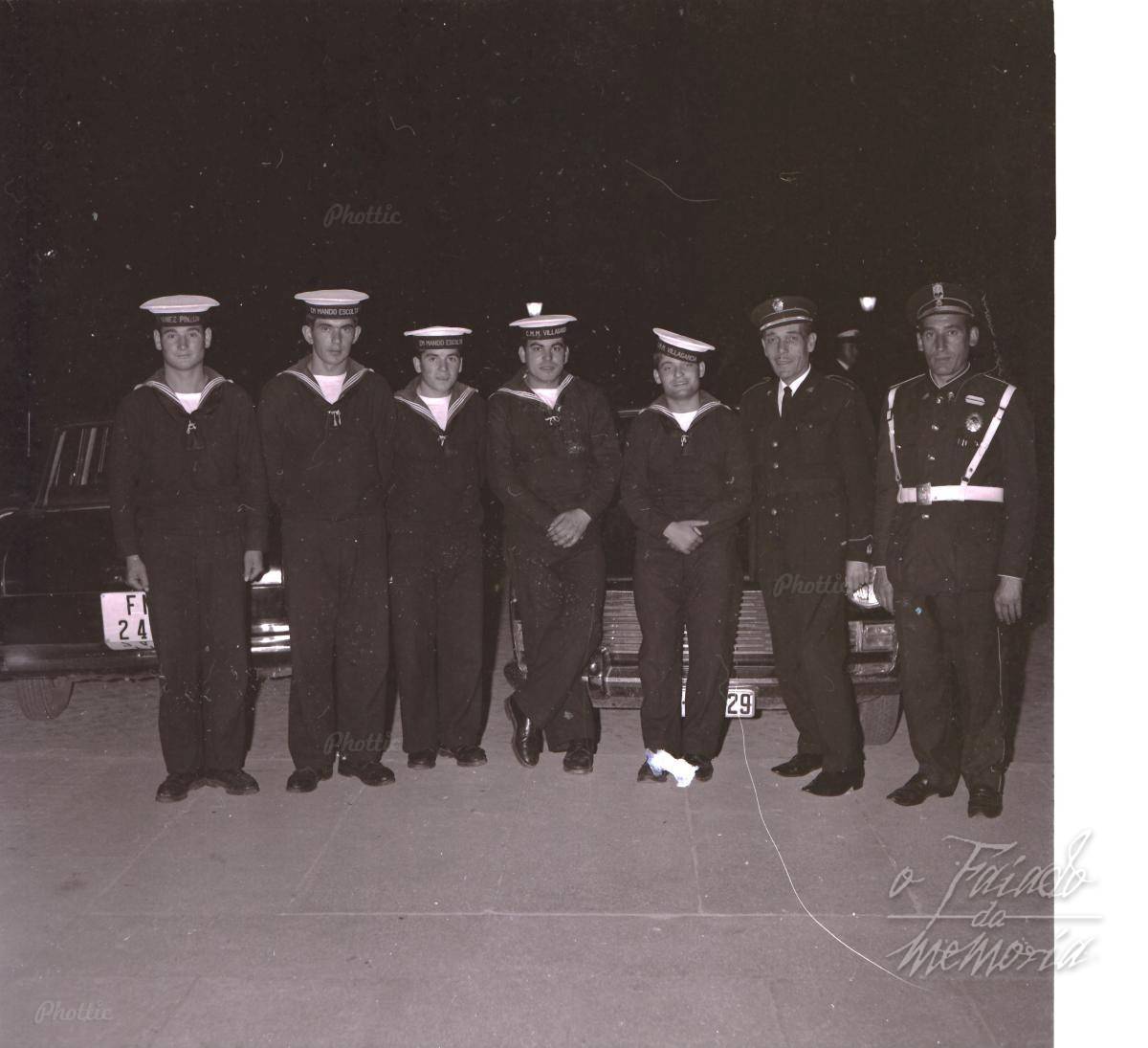 Chegara a o concello alguen con representacion no Ministerio de Marina, os de Vilagarcia do Concello e da Comandancia tiraron a casa pola ventana no agasallo.Na imaxen cinco mariñeiros que facian de choferes e acompañantes da comitiva, como lembranza retratanse con Paco Dasilva xefe da policia local e Maneiro cabo da mesma