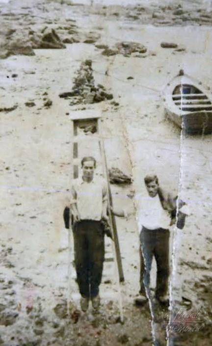 Decoroso Fresnedo, a dereita, con Vicente Cardalda non se sabe o ano, na marisma que había diante da finca dos Duques de Medina de las Torres na Comboa.