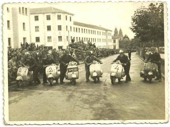 Prueba de Velocidad. Lugo. Año 1960. En esta ocasión, Pepe Castilla era el que competía con la faja del Vespa Club La Coruña. "A Lugo siempre íbamos a correr o en San Froilán o para el Corpus. Aquí quedé segundo". El vencedor de la prueba fue Carlos Agüín, quien competía con el dorsal nº 2.