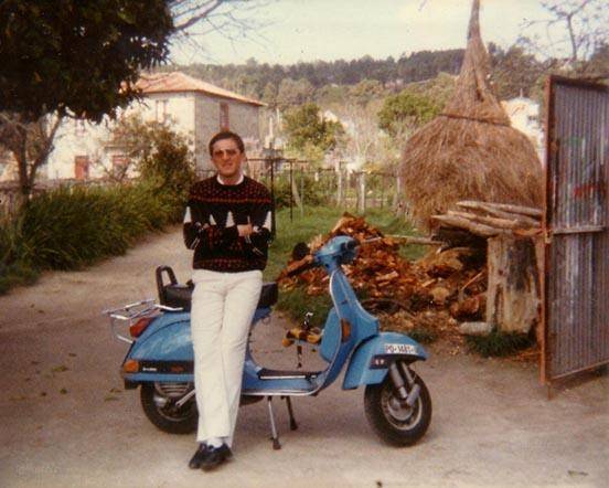 Quique lleva 33 años (y los que le quedan) ejerciendo como mecánico de motos, siempre en la Avenida de la Florida de Vigo. Primero cuando el taller pertenecía a Vespa Costas y actualmente en manos de Motomanía. Quizás sea el mecánico en activo de la provincia de Pontevedra más experimentado destripando estos trastos. En esta primera fotografía de 1981, lo vemos vestido de fin de semana, en la puerta del domicilio familiar, dispuesto a ir a dar un paseo con su novia. Quique al ver nuevamente esta foto nos comentó que en la finca tenían un peral cuyas peras tardaban mucho en madurar. Para acelerar el proceso y para evitar que se las comieran los pájaros, las recolectaban todavía verdes y las metían en medio del pajar.